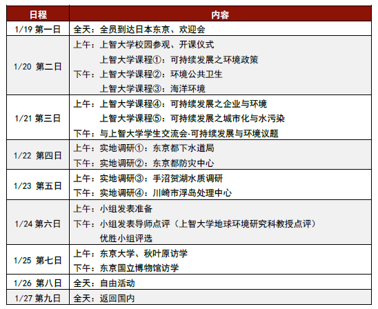 本项目将依托上智大学研究生院地球环境研究科,通过授课以及相关企业访问、实地考察等等方式,通过9天的时间,让学生对日本环球资源的历史及现状有切身的清楚的认识。并通过调研的模式,增强学生学习、考察、沟通的能力,以及国际化的思维。